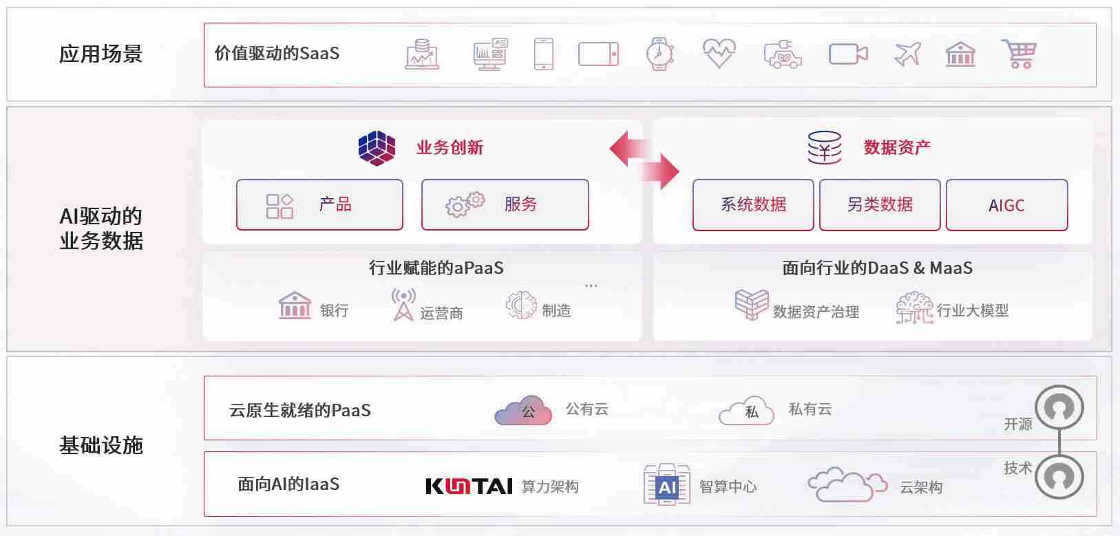 数字时代,,,,围绕企业数字化转型的关键要素,,豪门国际数码开创性的提出数云融合战略和技术体系框架,,,,着力在云原生、、、数字原生、、、、AI原生和信创产业上架构产品和服务能力,,,,为处在不同数字化转型阶段的快消零售、、、、汽车、、金融、、、医疗、、政企、、教育、、、运营商等行业客户提供泛在的敏捷IT能力和融合的数据驱动能力,,构建跨界融合创新的数字业务场景和新业务模式,,助力企业级客户建立面向未来的核心能力和竞争优势,,全面推动社会的数字化、、、智能化转型升级。。。。